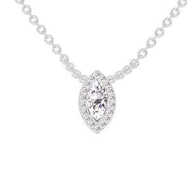 « L'ATELIER » Nº201804Collana Oro bianco 9 carati - Diamante di laboratorio Marchesa 0.3 Carati - Halo Diamante di laboratorio - Catena Rolò