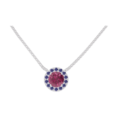 « L'ATELIER » N. 201856Collana Oro bianco 9 carati - Rubino Rotonda 0.3 Carati - Halo Zaffiro blu - Catena Veneziana