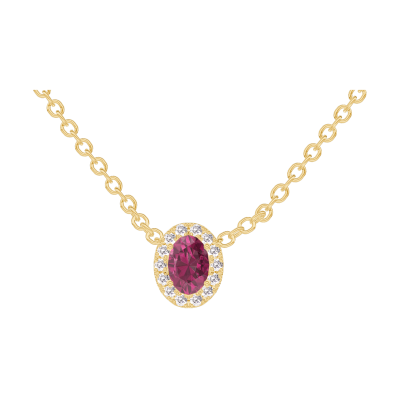 « L'ATELIER » N. 201930Collana Oro giallo 9 carati - Rubino Ovale 0.3 Carati - Halo Diamante - Catena Rolò