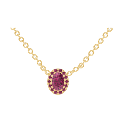 « L'ATELIER » N. 201938Collana Oro giallo 9 carati - Rubino Ovale 0.3 Carati - Halo Rubino - Catena Rolò