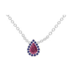 « L'ATELIER » N. 201980Collana Oro bianco 9 carati - Rubino Goccia 0.3 Carati - Halo Zaffiro blu - Catena Rolò
