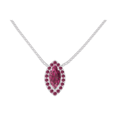 « L'ATELIER » Nº202007Collana Oro bianco 18 carati - Rubino Marchesa 0.3 Carati - Halo Rubino - Catena Veneziana