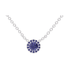 « L'ATELIER » N. 202043Collana Oro bianco 18 carati - Zaffiro blu Rotonda 0.3 Carati - Halo Zaffiro blu - Catena Rolò