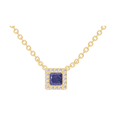 « L'ATELIER » Nº202057Collana Oro giallo 18 carati - Zaffiro blu Principessa 0.3 Carati - Halo Diamante - Catena Rolò