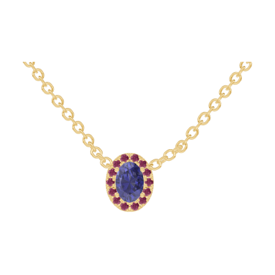 « L'ATELIER » Nº202130Collana Oro giallo 9 carati - Zaffiro blu Ovale 0.3 Carati - Halo Rubino - Catena Rolò