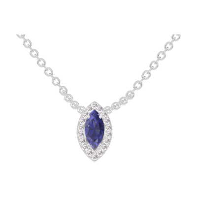 « L'ATELIER » N. 202187Collana Oro bianco 18 carati - Zaffiro blu Marchesa 0.3 Carati - Halo Diamante - Catena Rolò