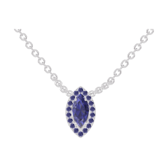 « L'ATELIER » N. 202204Collana Oro bianco 9 carati - Zaffiro blu Marchesa 0.3 Carati - Halo Zaffiro blu - Catena Rolò