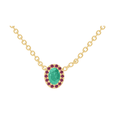 « L'ATELIER » N. 202321Collana Oro giallo 18 carati - Smeraldo Ovale 0.3 Carati - Halo Rubino - Catena Rolò