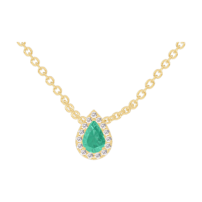 « L'ATELIER » Nº202346Collana Oro giallo 9 carati - Smeraldo Goccia 0.3 Carati - Halo Diamante - Catena Rolò