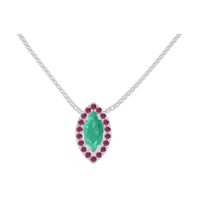 « L'ATELIER » N. 202391Collana Oro bianco 18 carati - Smeraldo Marchesa 0.3 Carati - Halo Rubino - Catena Veneziana