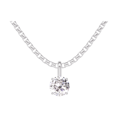 « L'ATELIER » Nº202436Ciondolo Oro bianco 9 carati - Diamante Rotonda 0.3 Carati - Catena Veneziana 4.8
