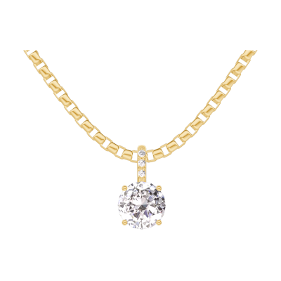 « L'ATELIER » N. 202437Ciondolo Oro giallo 18 carati - Diamante Rotonda 0.3 Carati - Incastonatura Diamante - Catena Veneziana 4.6