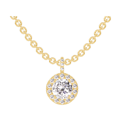 « L'ATELIER » N. 202469Ciondolo Oro giallo 18 carati - Diamante Rotonda 0.3 Carati - Halo Diamante - Incastonatura Diamante - Catena Rolò 4