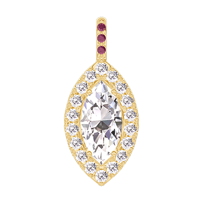 « L'ATELIER » N. 203418Ciondolo Oro giallo 9 carati - Diamante Marchesa 0.3 Carati - Halo Diamante - Incastonatura Rubino - Nessuna catenella