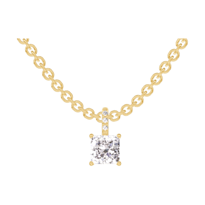 « L'ATELIER » N. 203766Ciondolo Oro giallo 9 carati - Diamante di laboratorio Principessa 0.3 Carati - Incastonatura Diamante di laboratorio - Catena Rolò