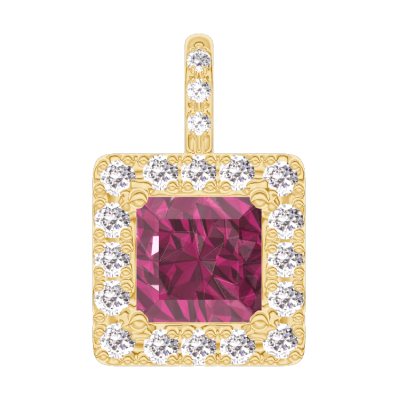 « L'ATELIER » N. 204949Ciondolo Oro giallo 18 carati - Rubino Principessa 0.3 Carati - Halo Diamante - Incastonatura Diamante - Nessuna catenella