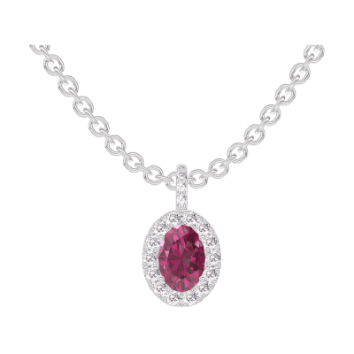 « L'ATELIER » N. 205351Ciondolo Oro bianco 18 carati - Rubino Ovale 0.3 Carati - Halo Diamante - Incastonatura Diamante - Catena Rolò