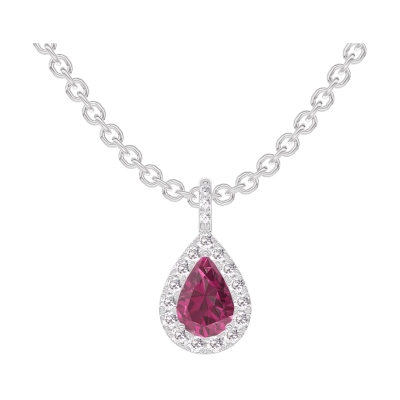 « L'ATELIER » Nº205544Ciondolo Oro bianco 9 carati - Rubino Goccia 0.3 Carati - Halo Diamante - Incastonatura Diamante - Catena Rolò
