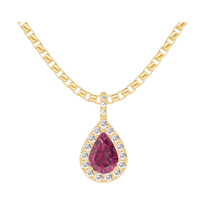 « L'ATELIER » N. 205558Ciondolo Oro giallo 9 carati - Rubino Goccia 0.3 Carati - Halo Diamante - Incastonatura Diamante - Catena Veneziana