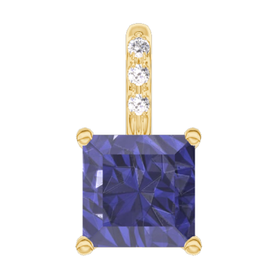 « L'ATELIER » N. 206053Ciondolo Oro giallo 18 carati - Zaffiro blu Principessa 0.3 Carati - Incastonatura Diamante - Nessuna catenella