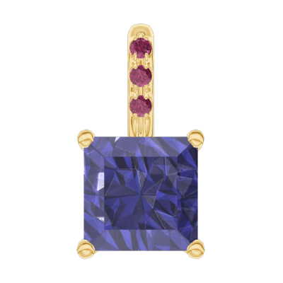 « L'ATELIER » N. 206057Ciondolo Oro giallo 18 carati - Zaffiro blu Principessa 0.3 Carati - Incastonatura Rubino - Nessuna catenella
