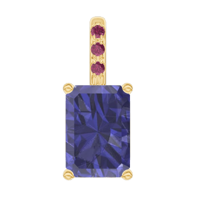 « L'ATELIER » N. 206250Ciondolo Oro giallo 9 carati - Zaffiro blu Rettangolo 0.3 Carati - Incastonatura Rubino - Nessuna catenella