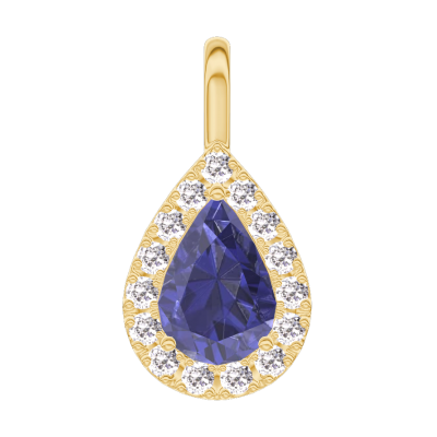 « L'ATELIER » Nº206674Ciondolo Oro giallo 9 carati - Zaffiro blu Goccia 0.3 Carati - Halo Diamante - Nessuna catenella