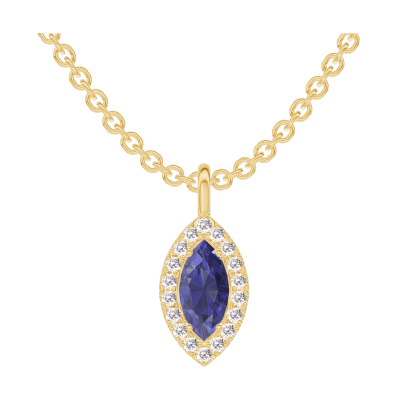 « L'ATELIER » Nº206881Ciondolo Oro giallo 18 carati - Zaffiro blu Marchesa 0.3 Carati - Halo Diamante - Catena Rolò