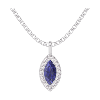 « L'ATELIER » Nº206900Ciondolo Oro bianco 9 carati - Zaffiro blu Marchesa 0.3 Carati - Halo Diamante - Catena Veneziana