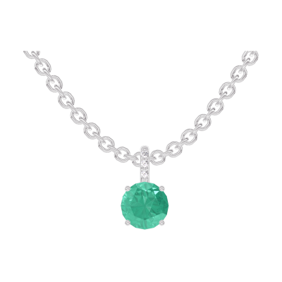 « L'ATELIER » N. 207032Ciondolo Oro bianco 9 carati - Smeraldo Rotonda 0.3 Carati - Incastonatura Diamante - Catena Rolò 4.6