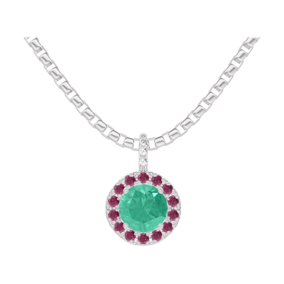 « L'ATELIER » Nº207144Ciondolo Oro bianco 9 carati - Smeraldo Rotonda 0.3 Carati - Halo Rubino - Incastonatura Diamante - Catena Veneziana 4