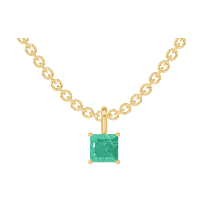 « L'ATELIER » N. 207218Ciondolo Oro giallo 9 carati - Smeraldo Principessa 0.3 Carati - Catena Rolò