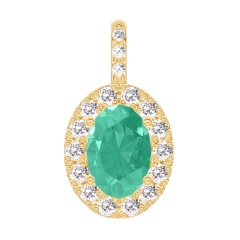 Ciondolo Oro giallo 18 carati - Smeraldo Ovale 0.3 Carati - Halo Diamante - Incastonatura Diamante - Nessuna catenella