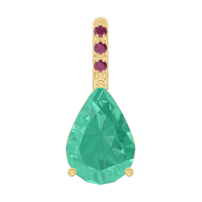 « L'ATELIER » N. 207786Ciondolo Oro giallo 9 carati - Smeraldo Goccia 0.3 Carati - Incastonatura Rubino - Nessuna catenella 4.4