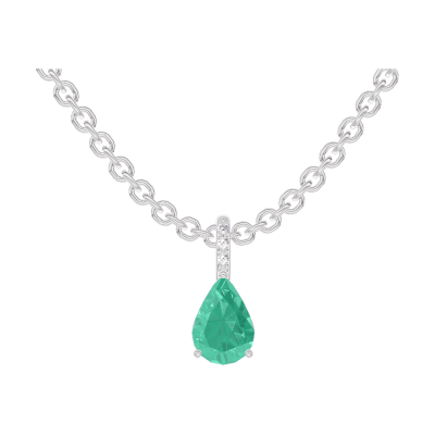 « L'ATELIER » N. 207800Ciondolo Oro bianco 9 carati - Smeraldo Goccia 0.3 Carati - Incastonatura Diamante - Catena Rolò 4.4 (12)