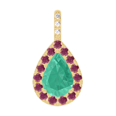 « L'ATELIER » Nº207877Ciondolo Oro giallo 18 carati - Smeraldo Goccia 0.3 Carati - Halo Rubino - Incastonatura Diamante - Nessuna catenella
