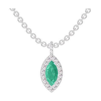 « L'ATELIER » Nº208040Ciondolo Oro bianco 9 carati - Smeraldo Marchesa 0.3 Carati - Halo Diamante - Incastonatura Diamante - Catena Rolò