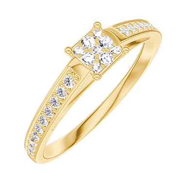 « L'ATELIER » N. 209105Anello Oro giallo 18 carati - Cluster di diamanti naturali Principessa equivalente 0.3 - Incastonatura Diamante
