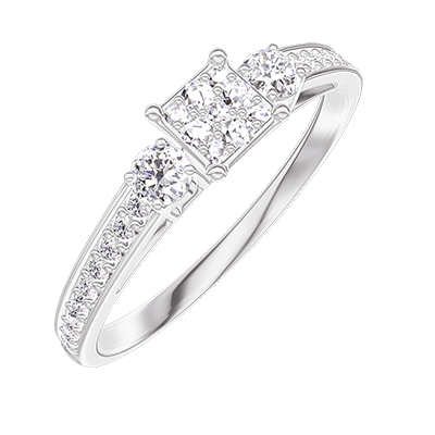 « L'ATELIER » N. 209128Anello Oro bianco 9 carati - Cluster di diamanti naturali Principessa equivalente 0.3 - Pietre laterali Diamante - Incastonatura Diamante