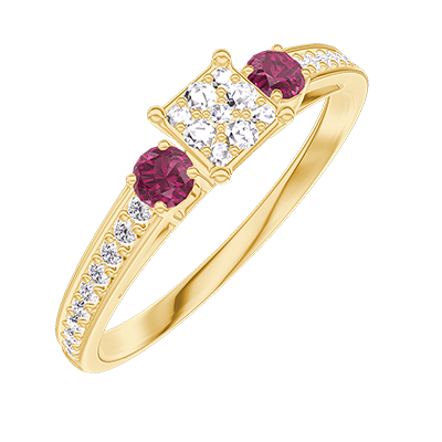 « L'ATELIER » N. 209145Anello Oro giallo 18 carati - Cluster di diamanti naturali Principessa equivalente 0.3 - Pietre laterali Rubino - Incastonatura Diamante