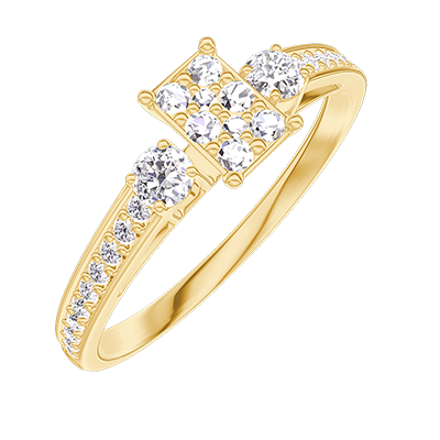 « L'ATELIER » Nº209226Anello Oro giallo 9 carati - Cluster di diamanti naturali Rettangolo equivalente 0.3 - Pietre laterali Diamante - Incastonatura Diamante