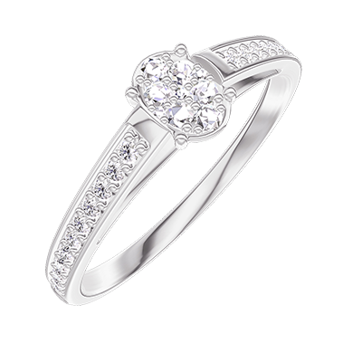 « L'ATELIER » N. 209308Anello Oro bianco 9 carati - Cluster di diamanti naturali Ovale equivalente 0.3 - Incastonatura Diamante 5