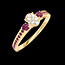 Anello Oro giallo 9 carati - Cluster di diamanti naturali Ovale equivalente 0.3 - Pietre laterali Rubino - Incastonatura Rubino