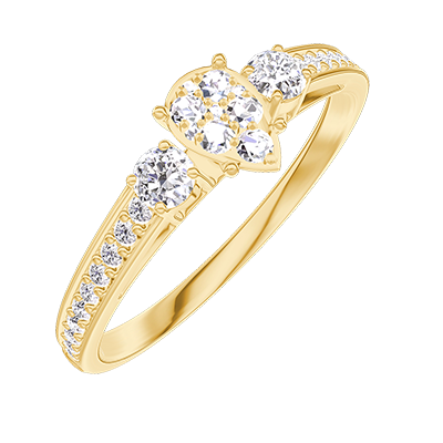 « L'ATELIER » N. 209426Anello Oro giallo 9 carati - Cluster di diamanti naturali Goccia equivalente 0.3 - Pietre laterali Diamante - Incastonatura Diamante