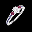 Anello Oro bianco 9 carati - Cluster di diamanti naturali Goccia equivalente 0.3 - Pietre laterali Rubino - Incastonatura Zaffiro blu