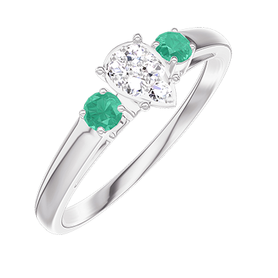« L'ATELIER » Nº209483Anello Oro bianco 18 carati - Cluster di diamanti naturali Goccia equivalente 0.3 - Pietre laterali Smeraldo