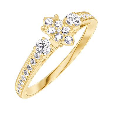 « L'ATELIER » Nº209526Anello Oro giallo 9 carati - Cluster di diamanti naturali Marchesa equivalente 0.3 - Pietre laterali Diamante - Incastonatura Diamante