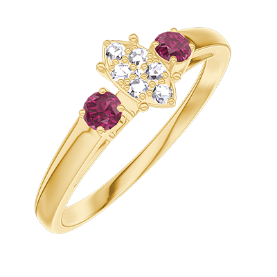 « L'ATELIER » N. 209541Anello Oro giallo 18 carati - Cluster di diamanti naturali Marchesa equivalente 0.3 - Pietre laterali Rubino