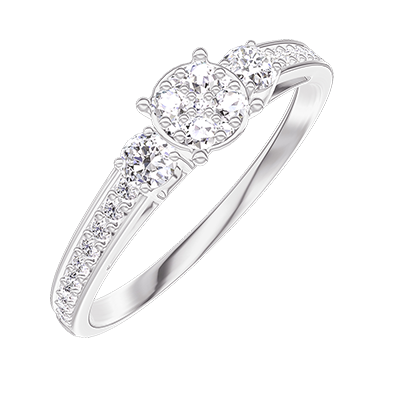 « L'ATELIER » N. 209628Anello Oro bianco 9 carati - Cluster di diamanti naturali Rotonda equivalente 0.5 - Pietre laterali Diamante - Incastonatura Diamante 4.5