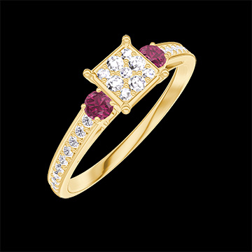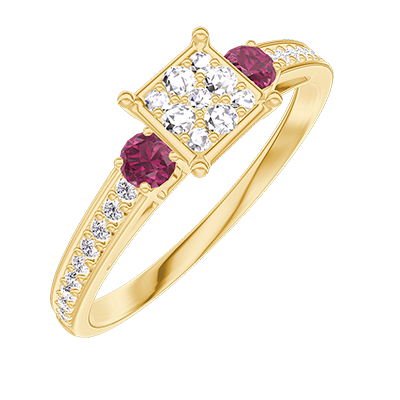 « L'ATELIER » N. 209745Anello Oro giallo 18 carati - Cluster di diamanti naturali Principessa equivalente 0.5 - Pietre laterali Rubino - Incastonatura Diamante